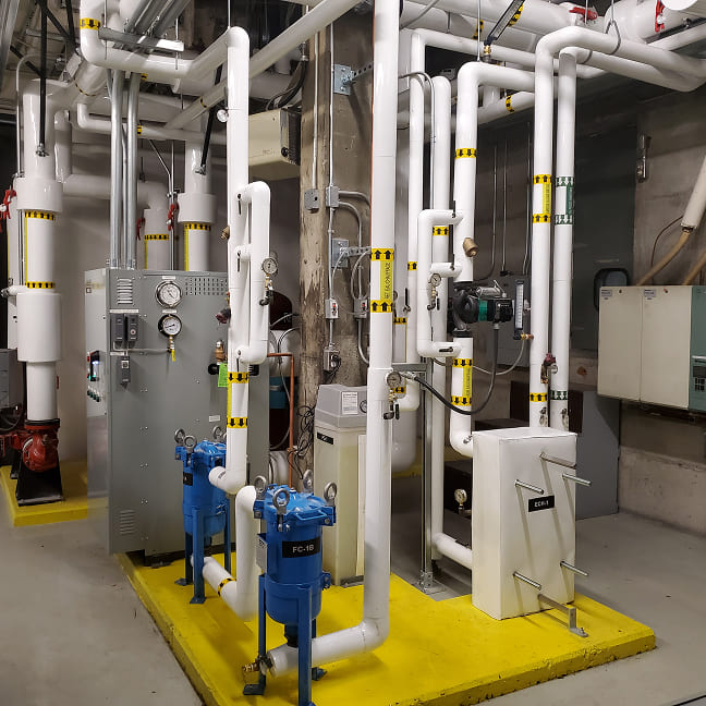 Installation de réseaux de tuyauterie adaptés aux besoins techniques du secteur commercial et industriel, incluant l’isolation, la filtration et les équipements de contrôle.