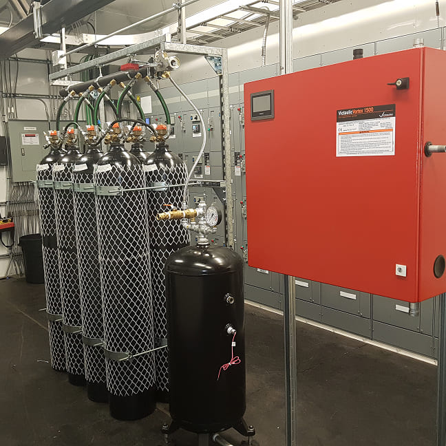 Installation d’un système Novec dans une salle de contrôle critique. Mandat clé assurant une protection incendie propre, rapide et sans résidus pour l’environnement électronique.