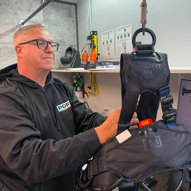 Inspection minutieuse des harnais antichute selon les normes en vigueur, assurant la conformité, la traçabilité et la sécurité des travailleurs en hauteur sur les chantiers.