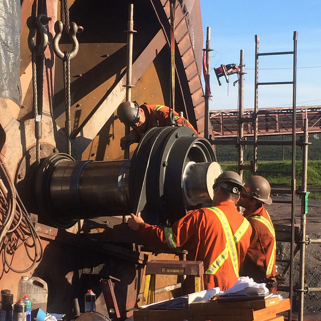 Intervention de précision sur le site visant à assurer la performance et la fiabilité des équipements critiques dans le secteur minier.